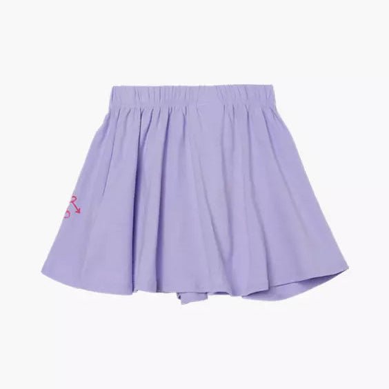 Lilla glitterdetaljer legger til en touch av glam og spenning, noe som gjør skjørtet til et flott valg for både hverdagsbruk og spesielle anledninger. Skjørtet kan enkelt kombineres med en t-skjorte eller bluse og et par sandaler eller joggesko for et komplett og søtt antrekk.